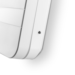 Diese hoch entwickelte Technik der Funkblende sollte den BewohnerInnen aber nicht zu viel Aufmerksamkeit abverlangen, sondern schlicht ihren Job machen. Dieser Anspruch führte zum Grundprinzip Nummer 3: weniger technisches Gadget, mehr Konsumprodukt. Große Gehäuse-Eckradien (R25) erzeugen eine moderne, sympathische Gesamtwirkung und lassen die Funkblende mit der umgebenden Wand verschmelzen. Wie das geht? Die klare, plane Frontfläche läuft parallel zur Wandfläche und ragt nicht angewinkelt in den Raum. So wie auch eine Steckdose ist die Funkblende somit immer vor Ort und immer einsatzbereit – und stört doch niemals.