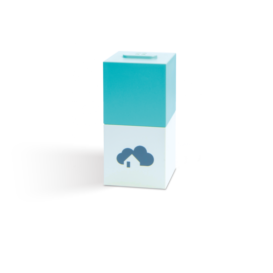 The Brain Cube is the central control unit and forms the basis of the homee Smart Home. Here, the signals received by the optionally available radio cubes are processed. Via WLAN, the Brain Cube connects to the local network, so that it and the connected radio components can be reached from anywhere.